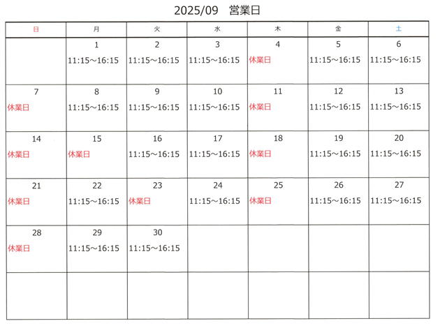 2025年9月営業日のご案内