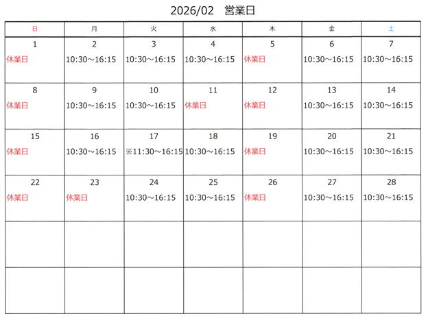 2026年2月営業日のご案内